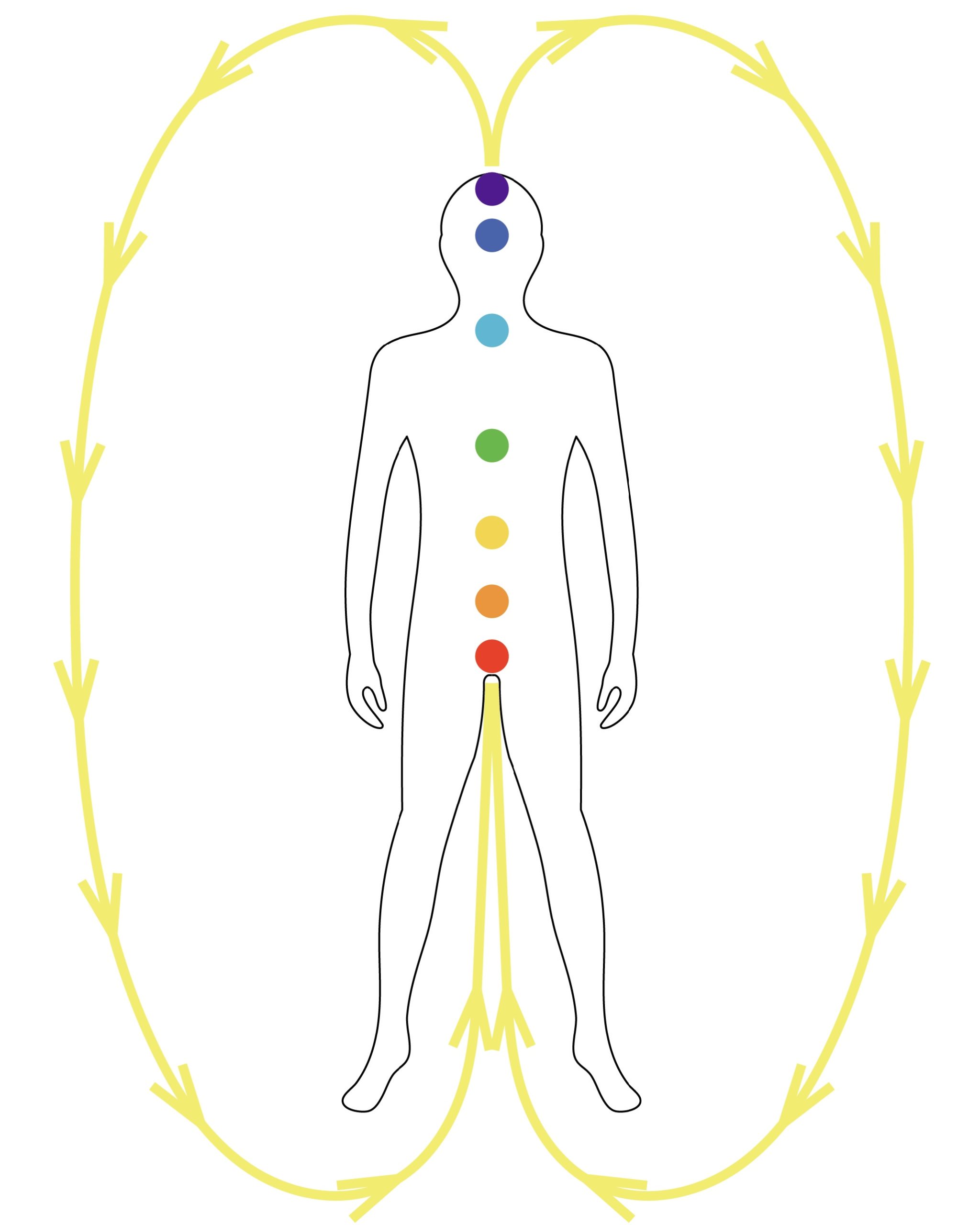 任脈は体の前面を通る氣脈であり、督脈は体の背面を通る氣脈です。この二つの脈は体を正中線上にグルっと一周する形で繋がり、存在しています。この2つの氣脈における氣の流れは、基本的には下から上に流れています。